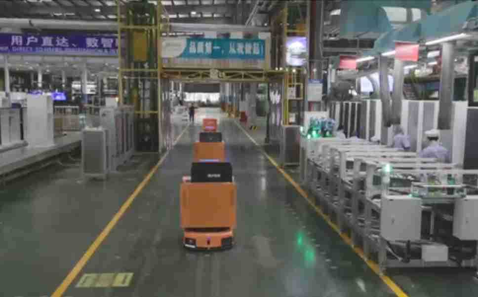 为车载冰箱物流配送打造的智能解决方案,,包含产中物流通过潜伏举升AMR搬运至线边,,,产后成品物流智能仓储,,,流程包含产中物流智能齐套入库,,,,线边安灯叫料AMR智能配送至线边,,,,成品入库、、、、出库,,,,通过无人堆高车机器人,,,,智能仓储管理替代人工作业管理,,,实现更高存储、、更高效率、、、更具柔性化的解决方案。。。